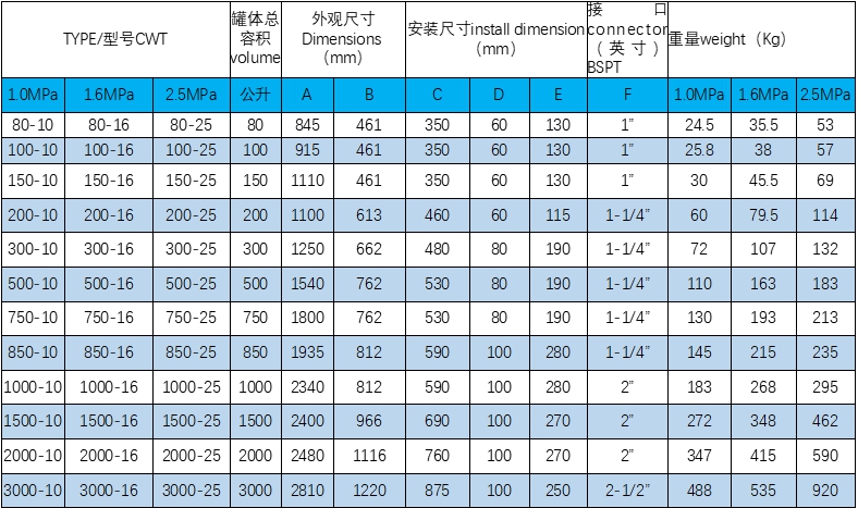可提供常規(guī)1.0MPa,1.6MPa和2.5MPa壓力 等級(jí)的產(chǎn)品,也可以量身定制10MPa以下的壓力膨脹罐產(chǎn)品。